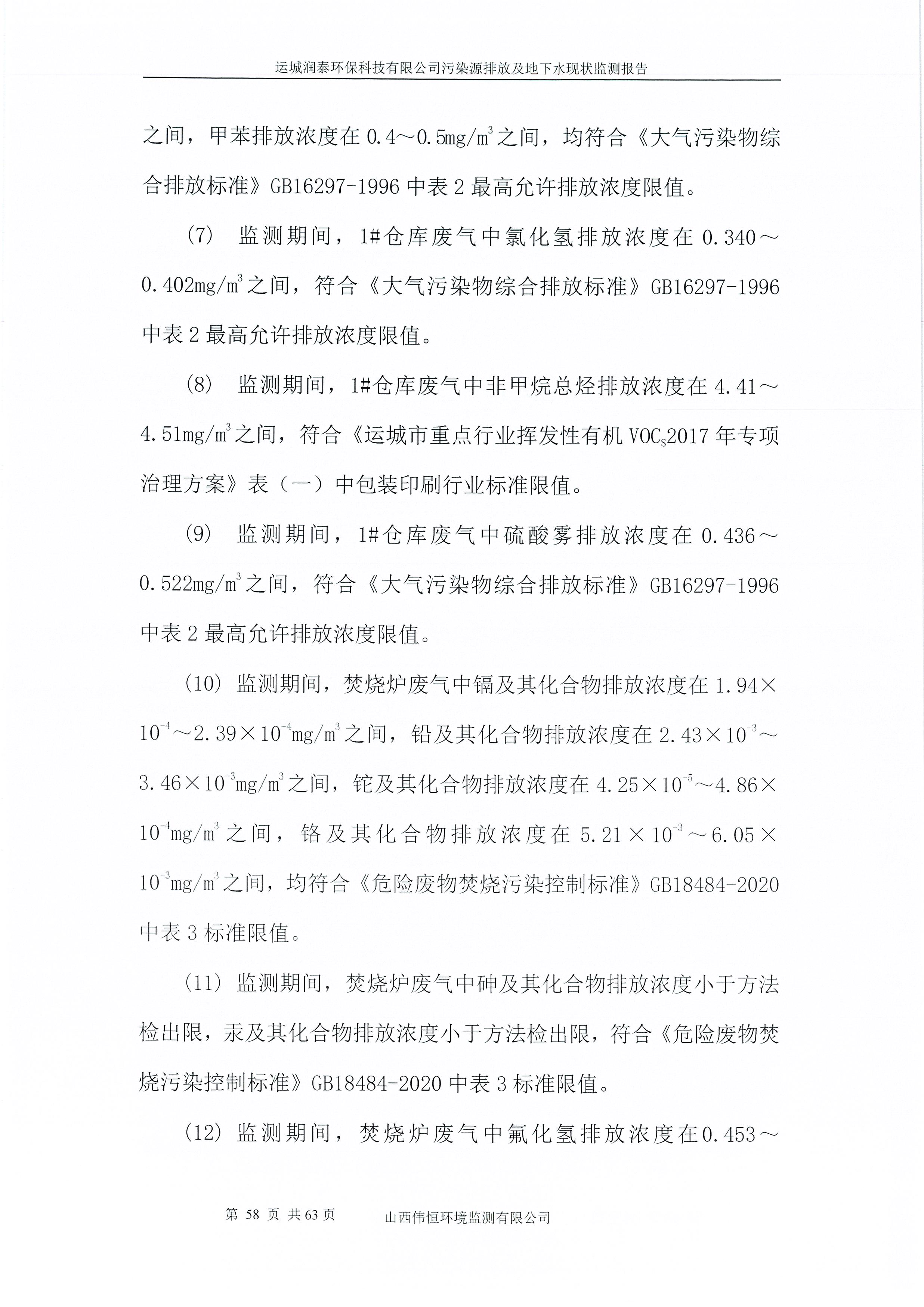 2025年潤泰環(huán)保七月份自行監(jiān)測報告