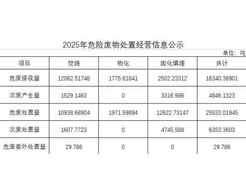 2025年危險廢物處置經(jīng)營信息公示
