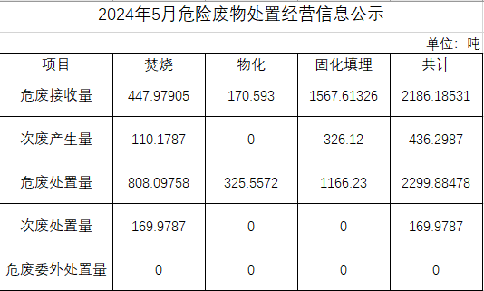 5月危險(xiǎn)廢物處置經(jīng)營(yíng)信息公示